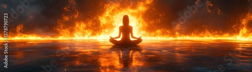 Meditation in Harmony A Serene Figure at the Heart of Fiery Flames