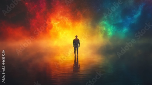 Meditation Silhouette Under Star-Filled Universe with Full Moon