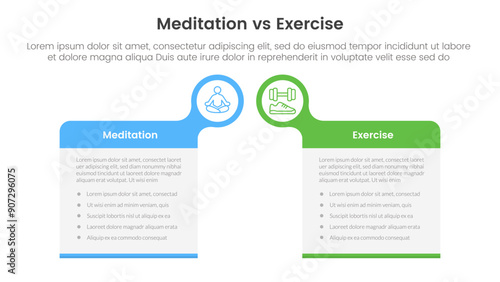 meditation vs physical exercise comparison or versus concept for infographic template banner with big box table with bubble circle header badge with two point list information