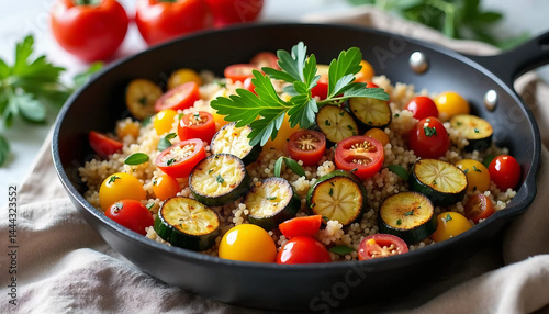 Mediterranean Couscous Skillet with Roasted Zucchini and Tomatoes