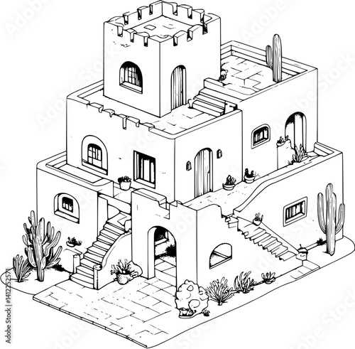 Mediterranean style Farmhouse isometric design, Mediterranean style Farmhouse vector illustration