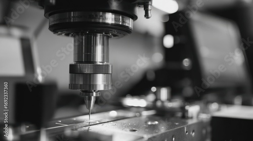 Medium shot showing precision measurement with laserbased metrology system concentrated focus on laser alignment and data readout rest of the scene softly blurred.