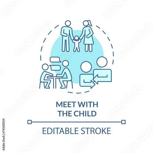 Meet with child soft blue concept icon. Build family bonds. Visiting kid before adoption. Prepare for parenting. Round shape line illustration. Abstract idea. Graphic design. Easy to use
