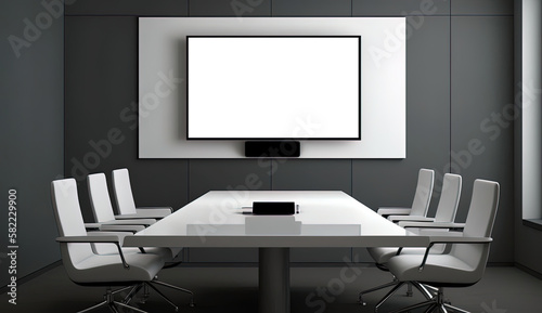 Meeting conference room with blank empty tv screen monitor. Made with Generative Ai