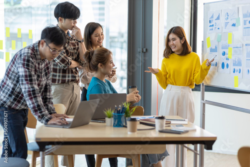 Meeting of the young entrepreneurs team for presentations, brainstorming and exchanging ideas in work and business planning.