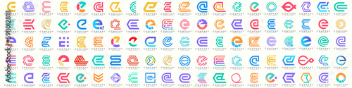 mega collection letters E logo design inspiration. minimalist abstract letter logos with colorful