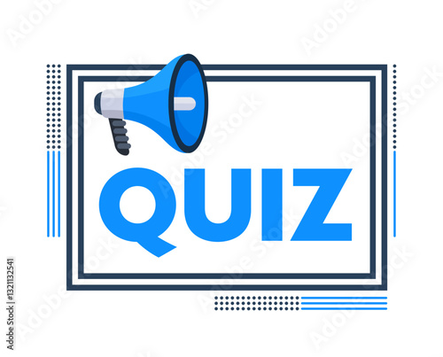 Megaphone Announcing Quiz Time with Blue Frame and Text