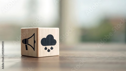 Megaphone cube emitting dark cloud icons — visual metaphor for public criticism and complaints