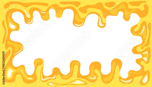 Melted cheese frame isolated on white background. Background with veins and flowing pattern. Hot cheddar, parmesan, vector illustration