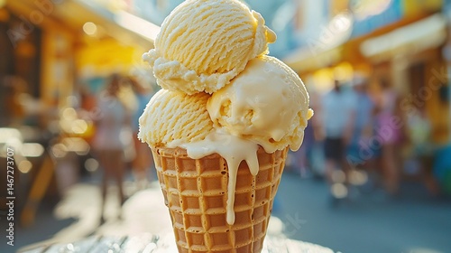 Melted vanilla ice cream cone
