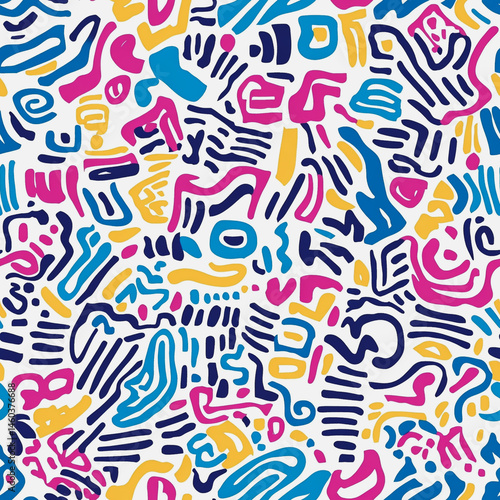 Memphis colorful style seamless pattern. Creative minimalist style art background for children or trendy design with basic shapes. Simple childish scribble backdrop white background
