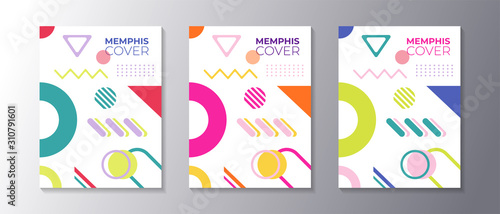 Memphis design cover set with cool geometric shape, applicable for poster, flyer, banner, magazine