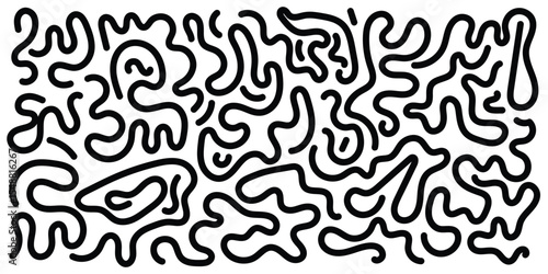 Memphis geometric seamless pattern. Monochrome abstract background in retro 80s,90s style with various shapes circles, semicircles, dots, zigzags, spirals, wavy lines. Cute kid doodle design in eps10.
