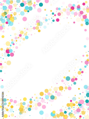 Memphis round confetti festive background in cyan blue, pink and yellow. Childish pattern vector.