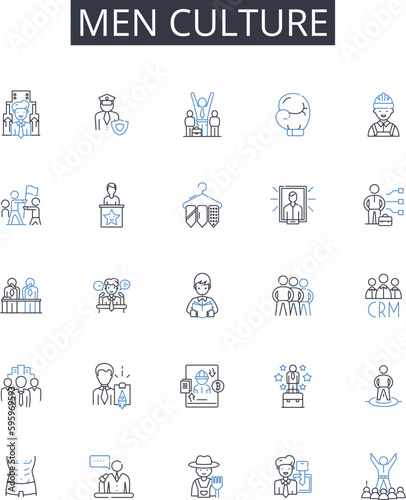 Men culture line icons collection. Women society, Children tradition, Elderly customs, Family heritage, Employee ethos, Citizen values, Leader principles vector and linear illustration. Community