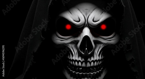 Menacing Reaper – Pronounced Brow, Deep Cheeks and Glowing Red Eyes