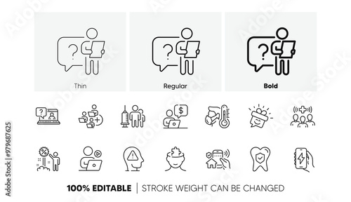 Mental health, Mental conundrum and Discount line icons. Pack of Charging app, Sick man, Search employee icon. Smile, Dental insurance, House security pictogram. Video conference, Faq. Vector