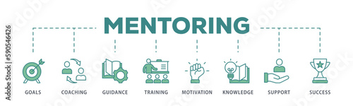 Mentoring banner web icon vector illustration concept with icon of goals, coaching, guidance, training, motivation, knowledge, support, and success