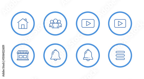 Menu Icon Set of Social Media. Home, Group, Watch, Marketplace, Notification, and Menu