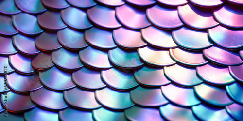 Mermaid scales pattern. Rainbow mermaid scales, glitter gradient background. Generative AI.