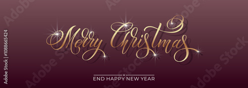 Merry Christmas and Happy New Year hand lettering calligraphy. Vector holiday illustration element. Typographic element for congratulations.