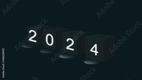 Merry Christmas and Happy New Year, wood Number lights at night dark background. 2024 to start business in the new year.