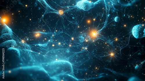 Mesmerizing Abstract Digital Background with Glowing Particles and Intricate Lines Depicting Connections in a Cosmic Network of Energy and Light