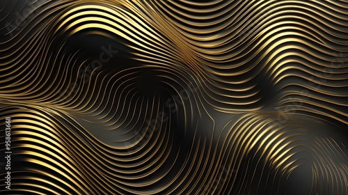 Mesmerizing Abstract Metallic Waves and Curves in Shimmering Gold and Black Tones