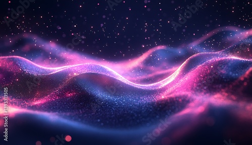 Mesmerizing abstract waves of sparkling particles in rich pink and purple hues : Generative AI