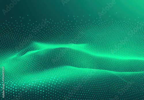 Mesmerizing background featuring abstract geometric shapes and dots in vibrant green hues, creating sense of depth and movement. This design evokes feeling of tranquility and modernity