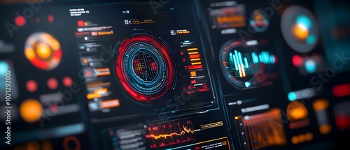 Mesmerizing digital data display with immersive HUD overlay seamless blending of futuristic GUI elements vibrant color palette with neon accents