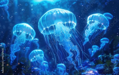 Mesmerizing Glow: A Dance of Jellyfish in the Ocean Depths