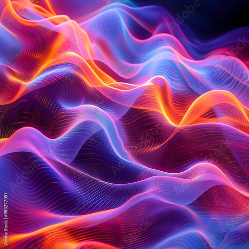 Mesmerizing Neon Waves Abstract Digital Art Glowing Fluid Gradient Pattern