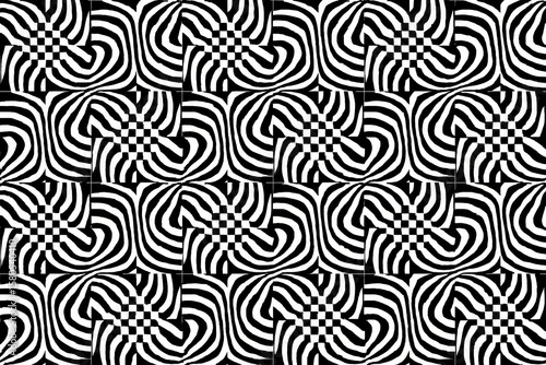 Mesmerizing Optical Illusion Pattern with Black and White Circular Swirls