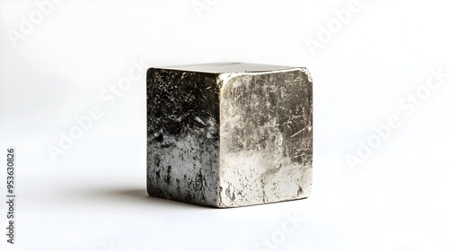 Mesmerizing Shimmering Pyrite Cube,Gleaming Metallic Luster on Stark White Backdrop