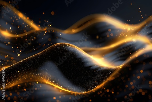 Mesmerizing Waves of Gold and Black with Sparkling Particles