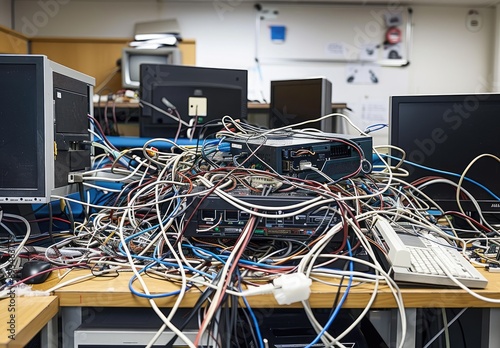 Messy Cables in a Tech Room