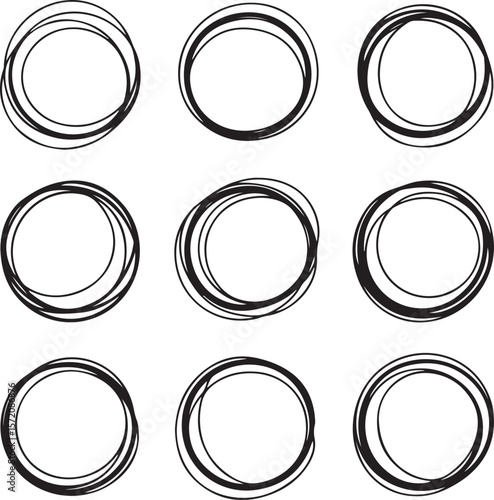 Messy Hand Drawn Circles Vector Ink Sketch Style