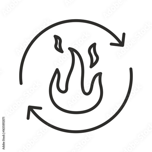 metabolism icon, burn calories, organism reaction, fire with arrows rotation, linear vector illustration eps10