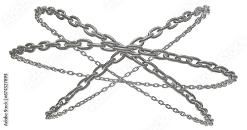 Metal chains creatively woven into circles in a 3D illustration, PNG format, with a clear background.