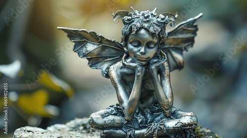 Metal Evil Fairy Figurine Seated in Sinister Pose