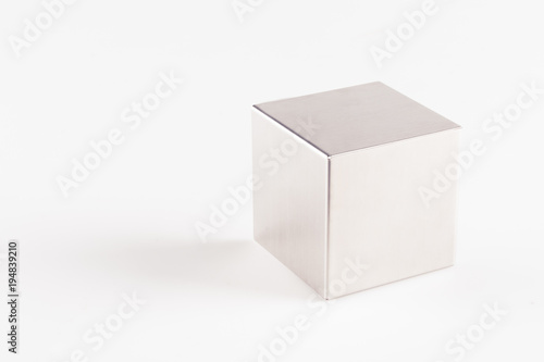 Metal grey cube on a white background ,abstract geometric shape
