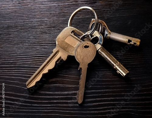 metal keys on a black wooden background