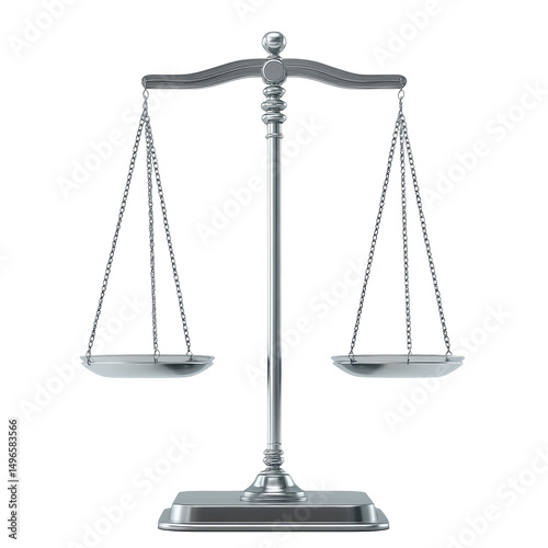 Metal scales symbolizing justice and balance against a Transparent background, emphasizing equality and fairness in society, scale with a pair scales on it, PNG background