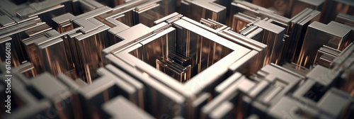 Metal Structure With Intricate Maze Pattern In The Center And Square Cutouts - Stock Photo 3D Motion Animation Still Frame Generative AI