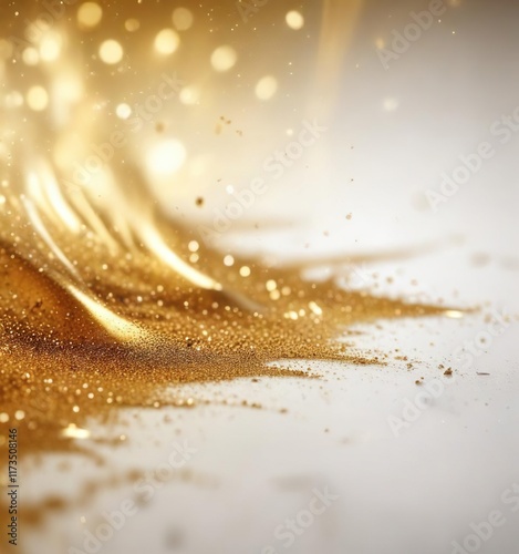 Metallic Gold Background with High Contrast Defocused Glitters and White Space, metallic gold background, defocused glitters, white space