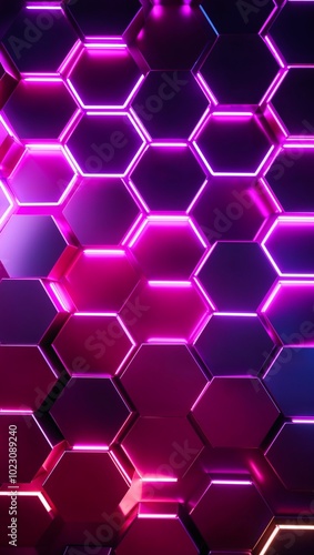 Metallic hexagons with bright neon lighting background for invitation or card screensaver