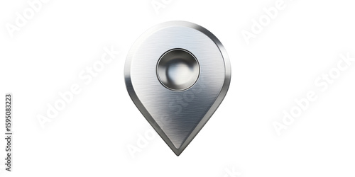 Metallic Location Pin Icon. Symbolizing Navigation And Gps Technology Isolated On Transparent Background
