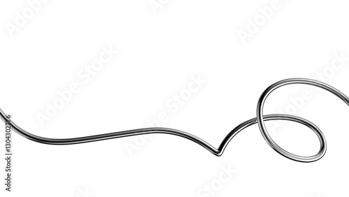 Metallic squiggle line 3D shape isolated. Futuristic chrome wriggling line banner, abstract tangled curve