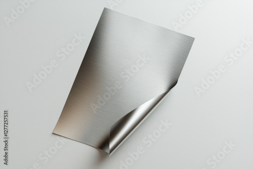 Metallic textured paper curls slightly at one corner on a clean, soft surface in a well-lit space